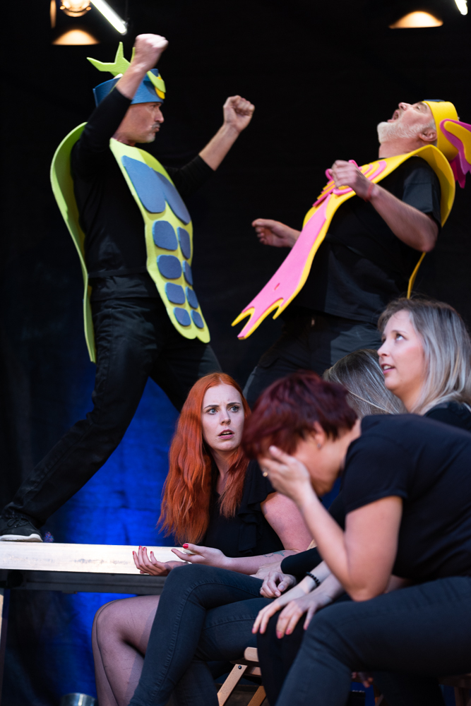 • Vědecko-fantastická stereotypická travestie pro několik mužů a všechny ženy. Podoby a proměny mužství a ženství postavené na hlavu, obrácené na ruby a vypuštěné bezostyšně přímo do diváků.